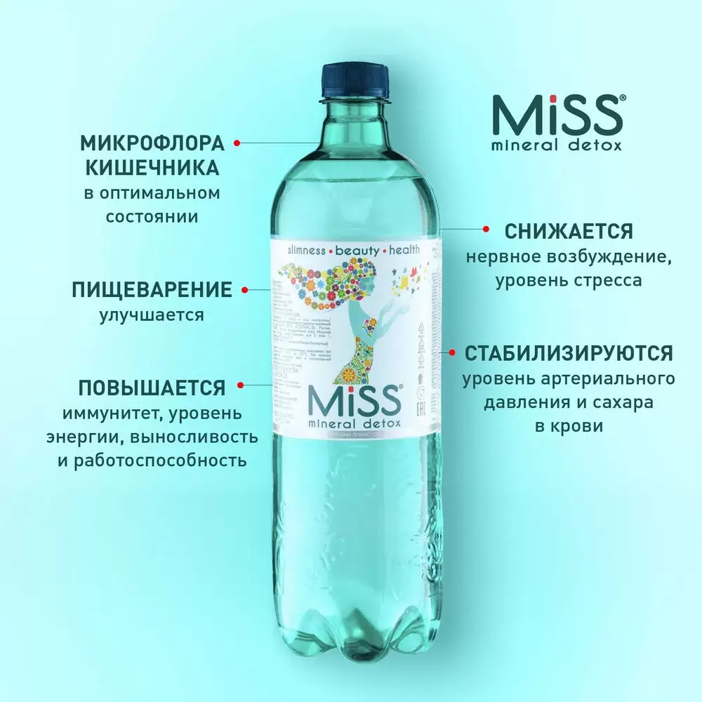 Минеральная вода MISS MINERAL DETOX ТЗ (С-Mg) 1 л ПЭТ