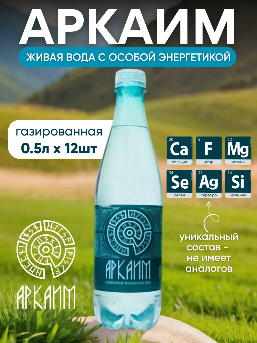 Главная - Вода 0.2 - 5 литров - Вода минеральная питьевая газированная Аркаим 0,5 л. ПЭТ